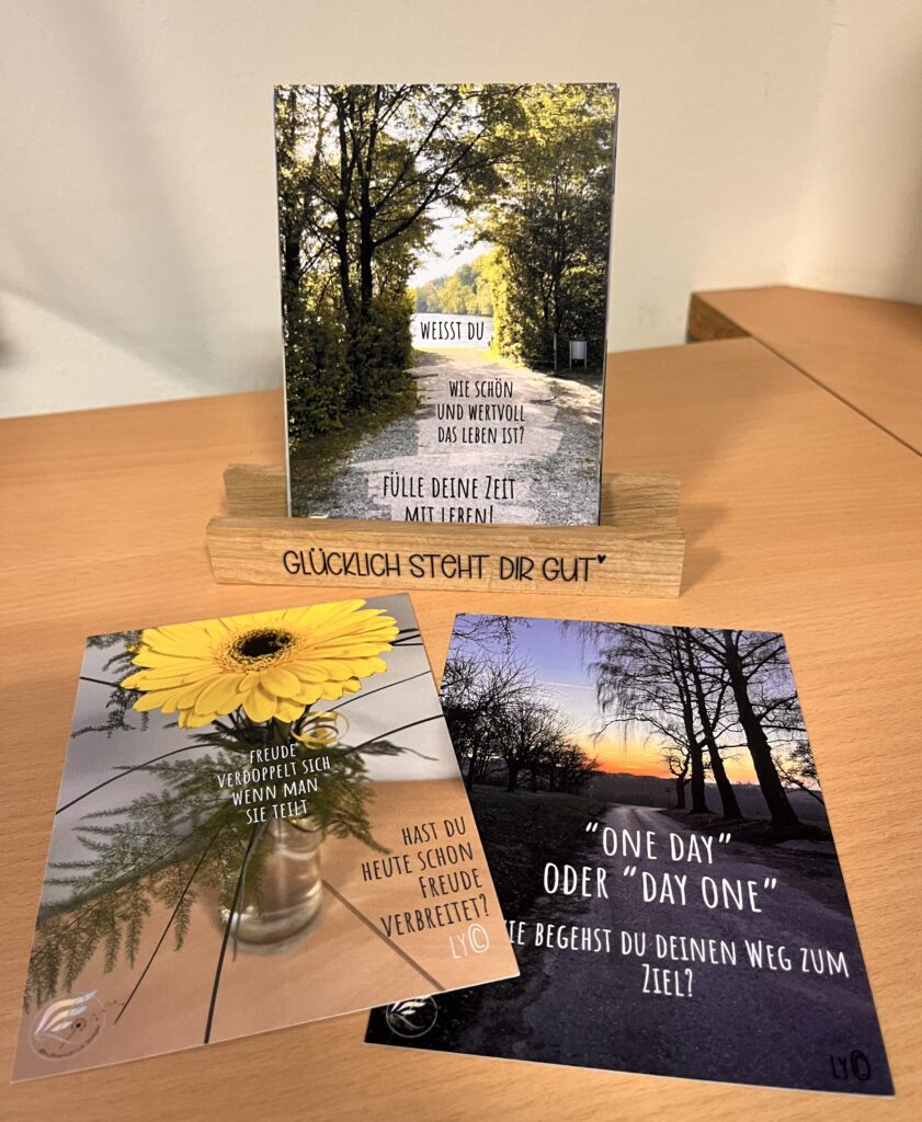 24 verschiedene Postkarten in einem Aufsteller für dich oder auch als Geschenk für jemanden der etwas Unterstützung gebrauchen kann.
